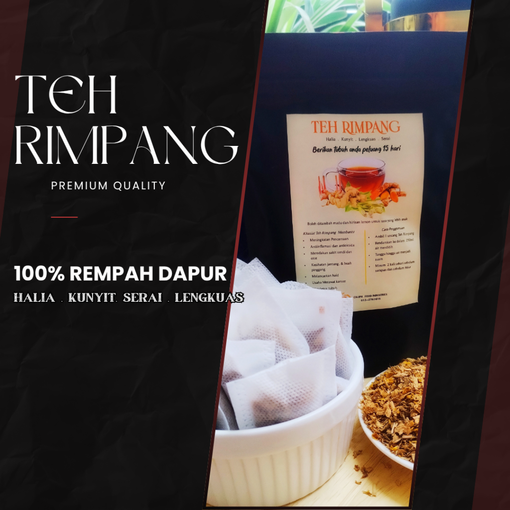 YANG BESTNYA..DENGAN TEH RIMPANG TAK PERLU DAH SUSAH PAYAH NAK CUCI HIRIS BAGAI..TINGGAL AMBIL 1 UNCANG MASUK DALAM SECAWAN AIR PANAS..BOLEH DINIKMATI DIMANA SAHAJA....